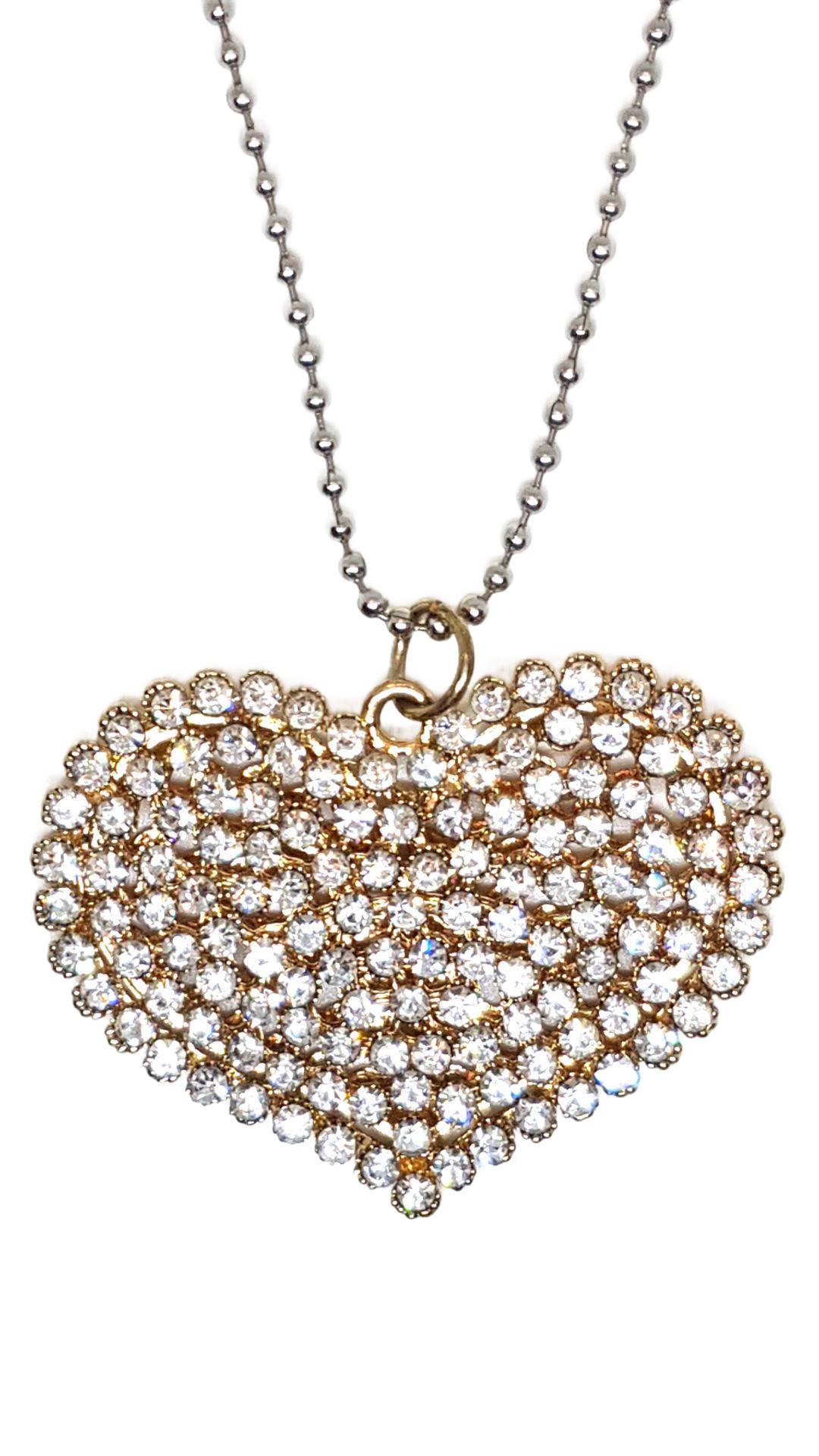 Herz Anhänger mit Strass (vergoldet) und Kette. Anhänger Größe: Länge: 4cm Breit: 5,5cm Ketten Länge: 80cm. Gewicht: 30,6g